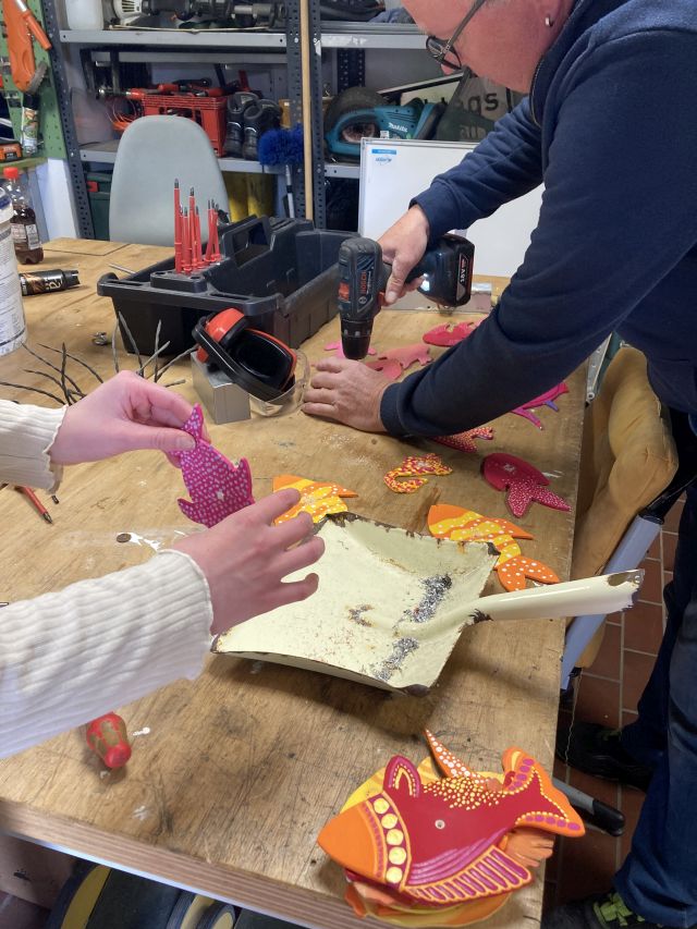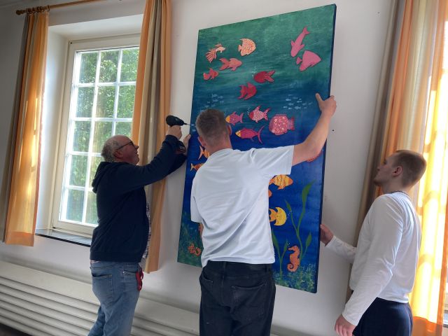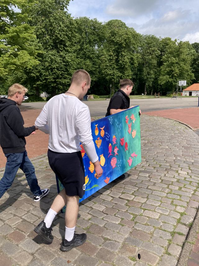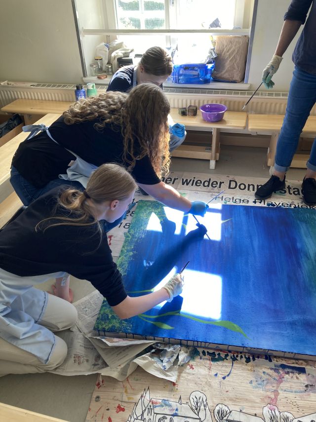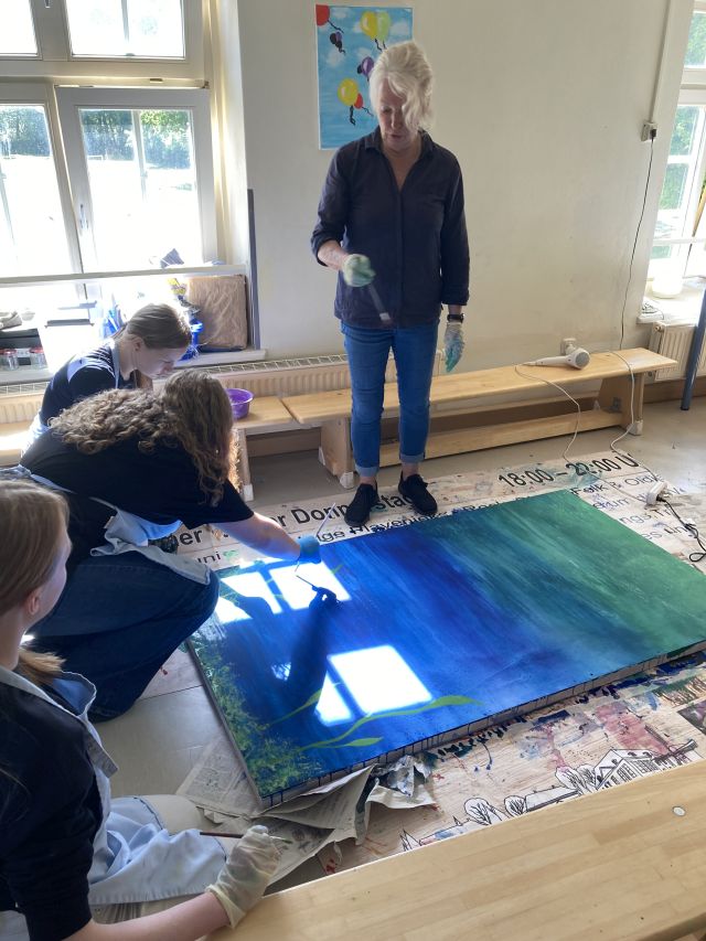 Abschlussklasse 10 gestaltet mit Unterstützung von Künstlerin Käthe Janssen ein gemeinsames „Abschiedsbild“.