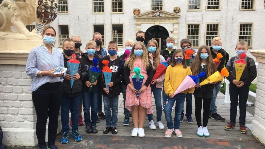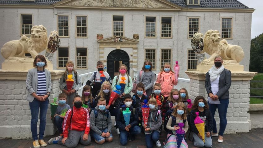 Nachdem die Paten der 10. Klasse die Schultüten übergeben hatten und die ersten Klassenfotos gemacht wurden, lernten die Schülerinnen und Schüler zusammen mit ihren Klassenlehrerinnen ihre Klassenräume und zukünftigen Mitschülerinnen kennen.