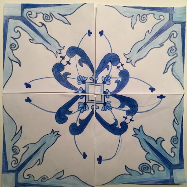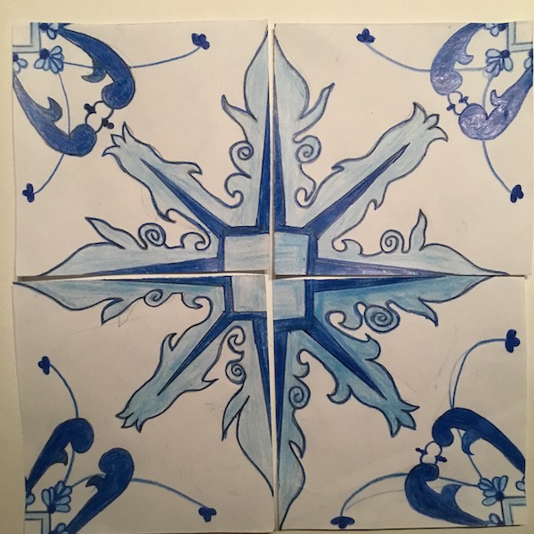 01.10.19 – Die Schülerinnen und Schüler der Erasmus-AG haben erste Entwürfe für ihre Fliesen entwickelt. Wichtig dabei war die Unterscheidung zwischen Muster und Motiven: Muster auf Fliesen wirken erst, wenn die Ecken mehrerer gleicher Fliesen zusammenstoßen. Die Muster sind symmetrisch angelegt. Dies muss bei der Gestaltung der Fliese berücksichtigt werden (siehe unten). Anders ist es bei Bilderfliesen. Die verschiedenen Motive wirken auch einzeln, wie der Entwurf mit der Kuh zeigt.