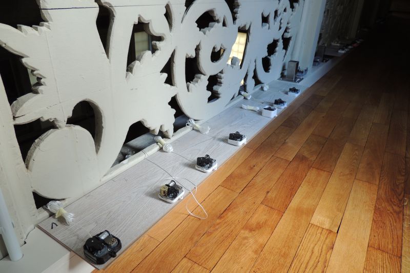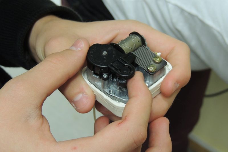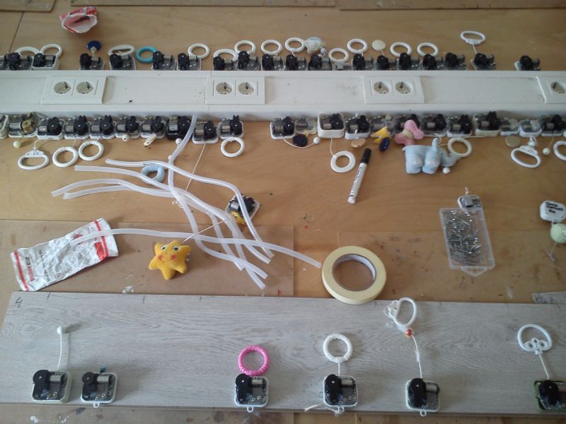 Wer auf den Dornumer Kunsttagen 2016 war, hat es gesehen: Das Spieluhrenprojekt. Einhundertzwanzig präparierte Spieluhren waren im Rittersaal hinter der Balustrade montiert. Die Schnüre zum Aufziehen hingen in den Rittersaal hinunter und konnten von dort aus gezogen werden. Ein großartiges Klangerlebnis.