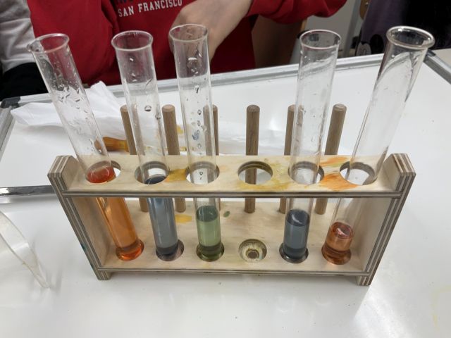 Chemieraum, wo Frau Jacob kleine Experimente vorbereitet hat.