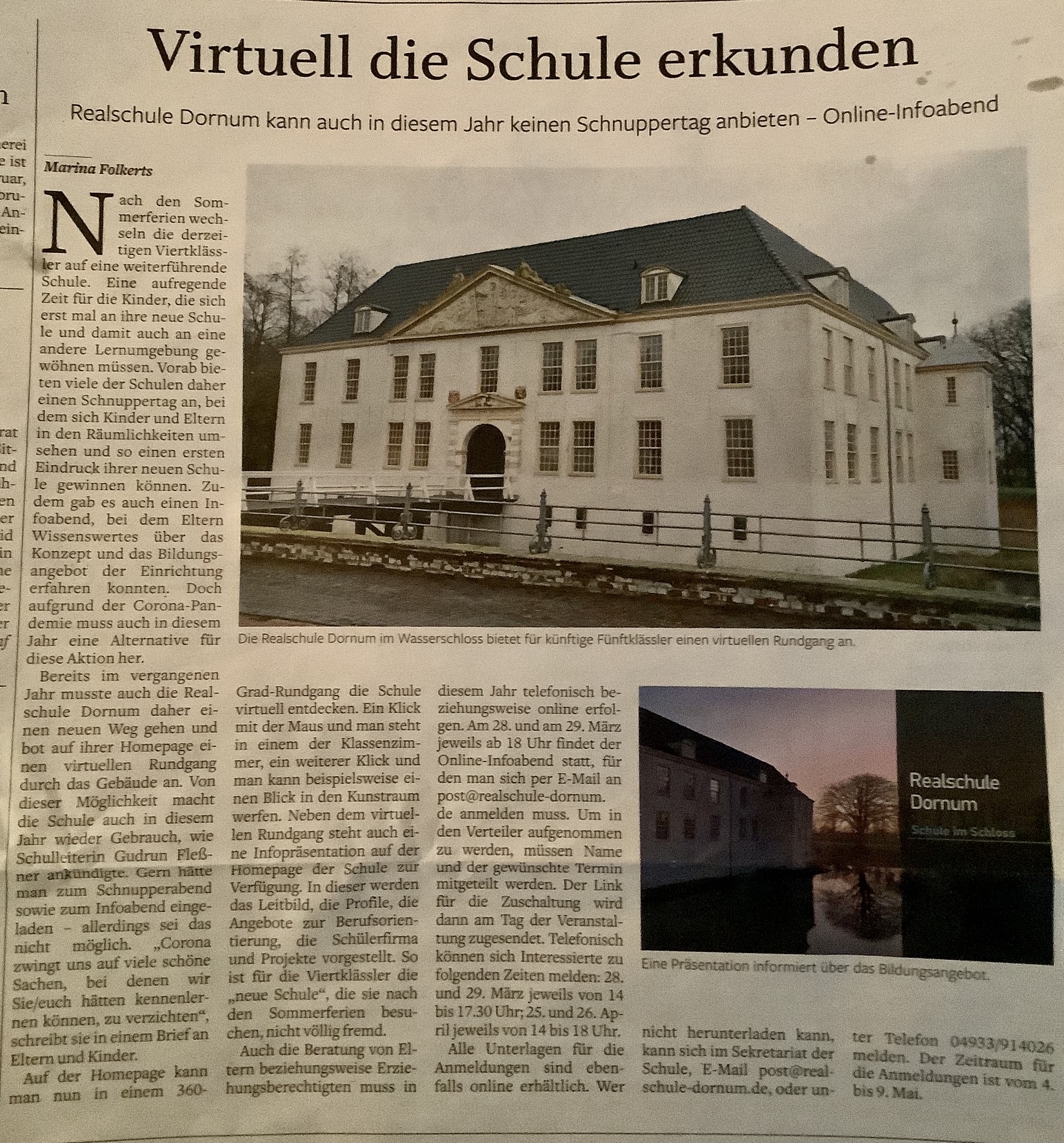 Realschule Dornum kann auch in diesem Jahr keinen Schnuppertag anbieten – Online-Infoabend (Quelle: Ostfriesischer Kurier vom 18.02.2022)